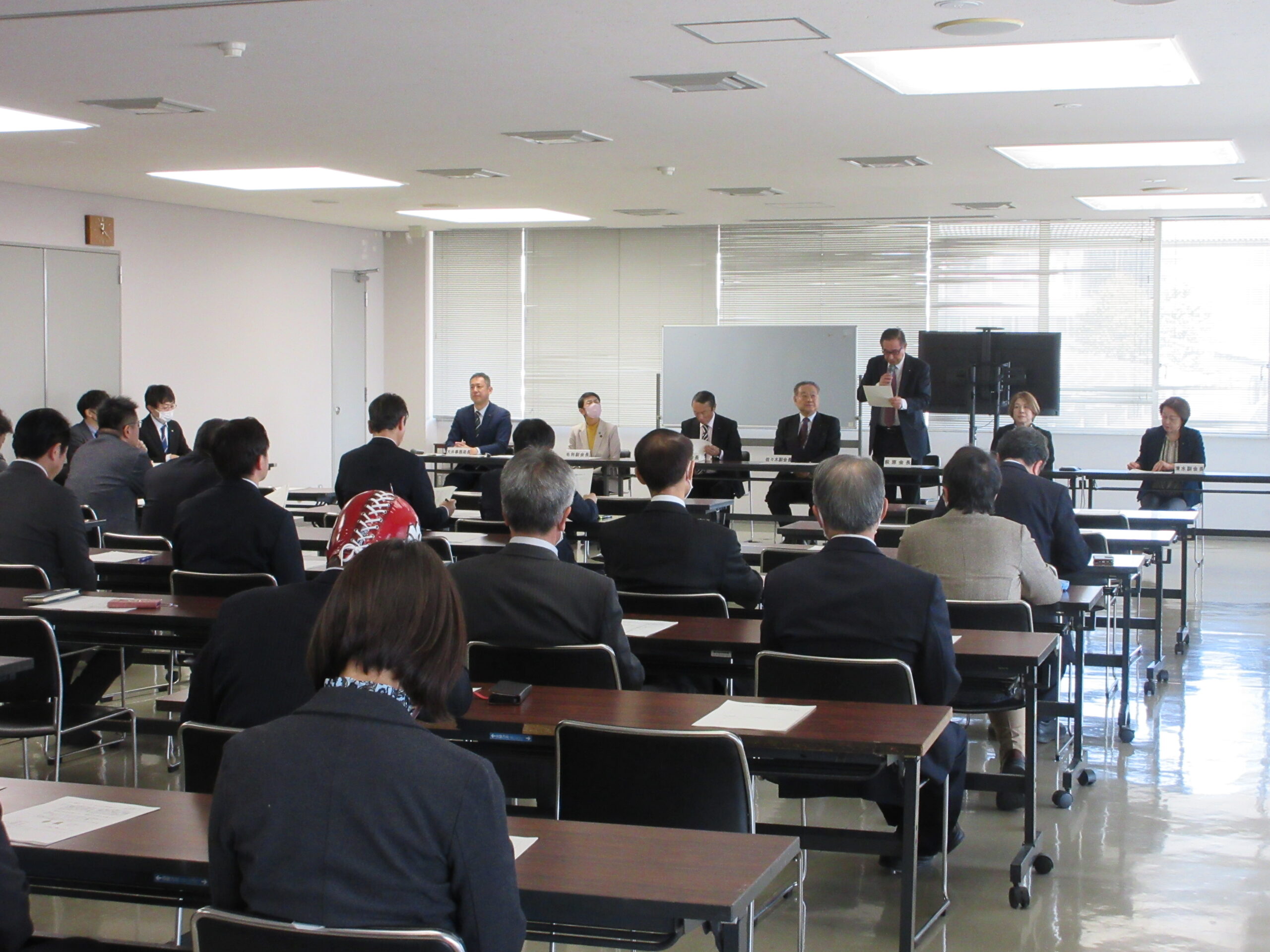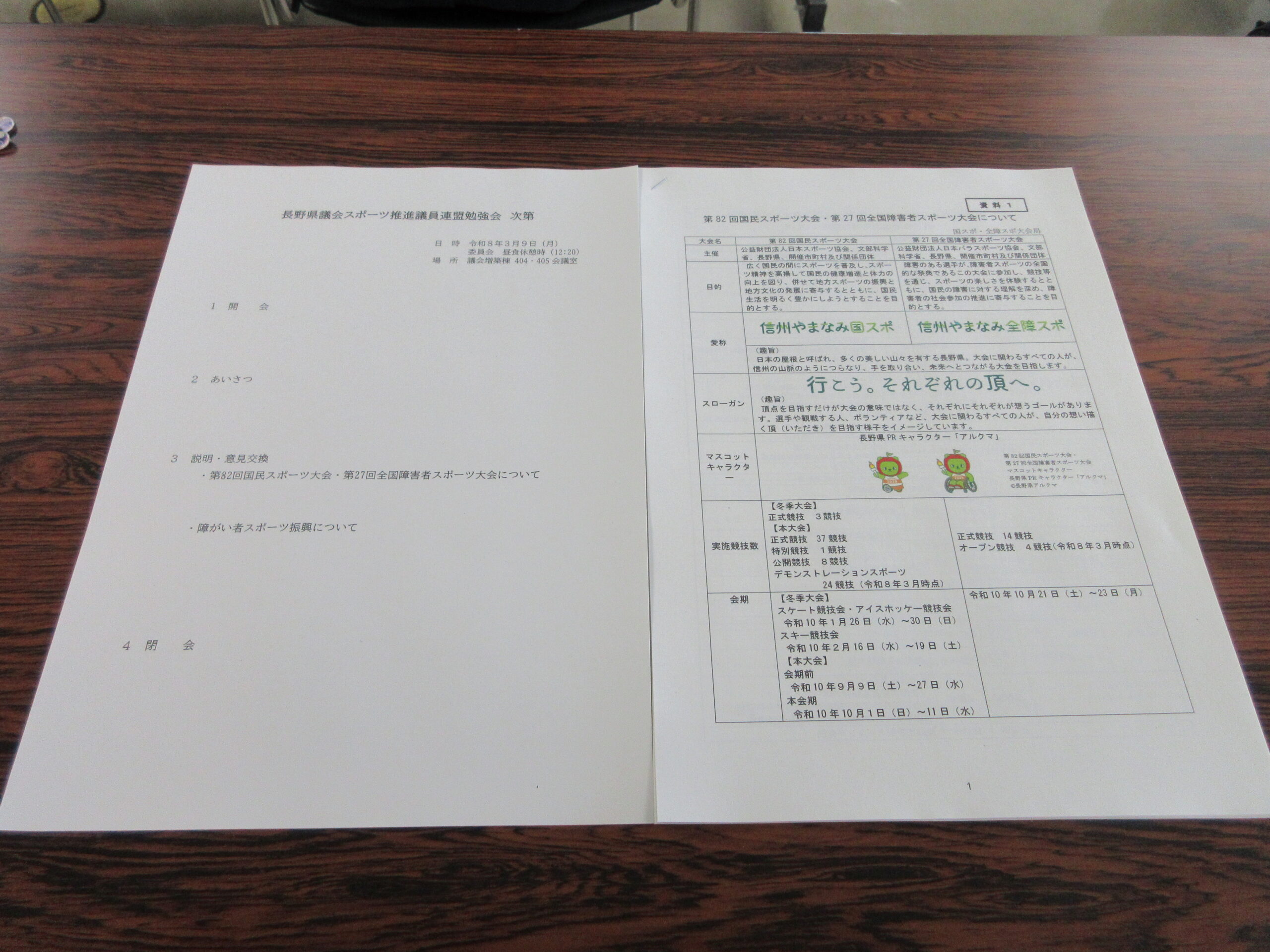 昼食休憩時「長野県議会スポーツ推進議員連盟勉強会」に出席し、「第82回国民スポーツ大会・第27回全国障害者スポーツ大会」について県より説明を受けました。